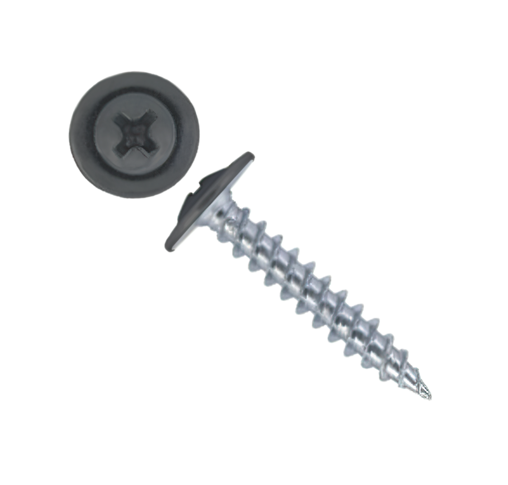 Саморез с напрессованой шайбой (ПШ) - имеют широкую плоскую головку под крестовидную биту (PH2), которая одновременно выполняет роль шайбы. Наконечник оцинкованный - острый.