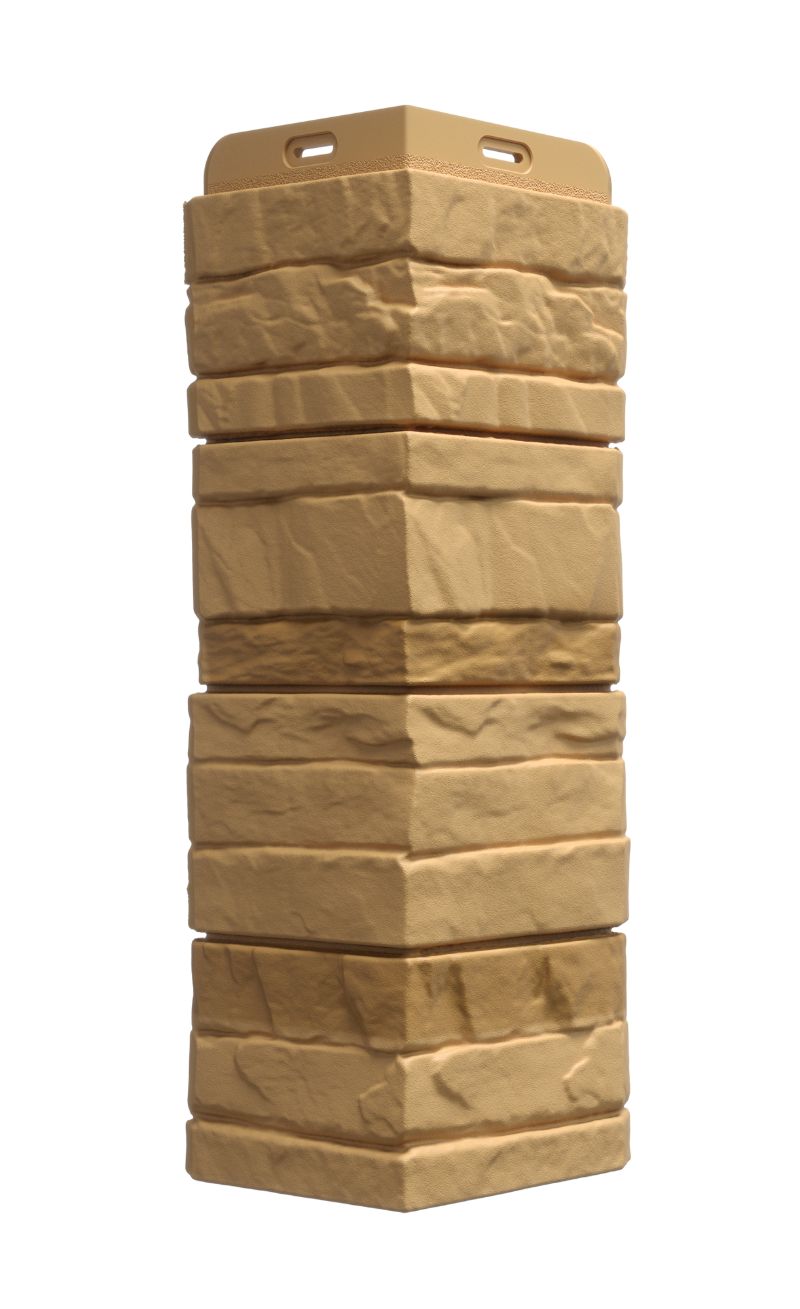 Углы с фактурой слоистого песчаника аккуратно закрывают торцы панелей и помогают создать эффект цельной облицовки. Для полной имитации каменной кладки используйте фасадные панели STEIN.