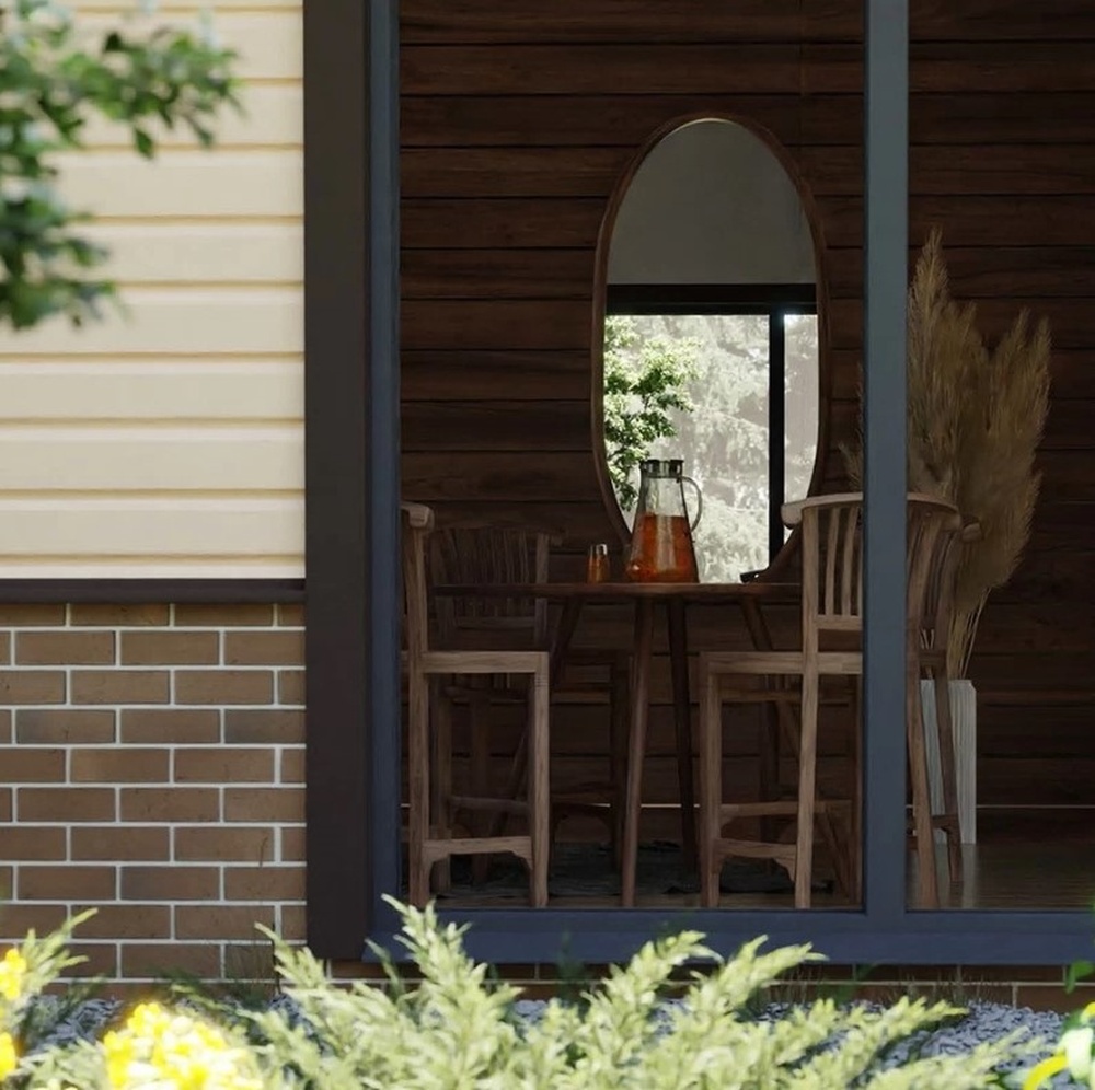 Красивый холодный оттенок в скандинавском стиле напоминает о красках северной природы. Благодаря геометрии профиля «ёлочка» сайдинг отлично имитирует отделку окрашенной вагонкой – визитную карточку скандинавской архитектуры. Сложный серо-голубой цвет приобретает особую глубину в сочетании со светлыми наличниками, углами и карнизами.